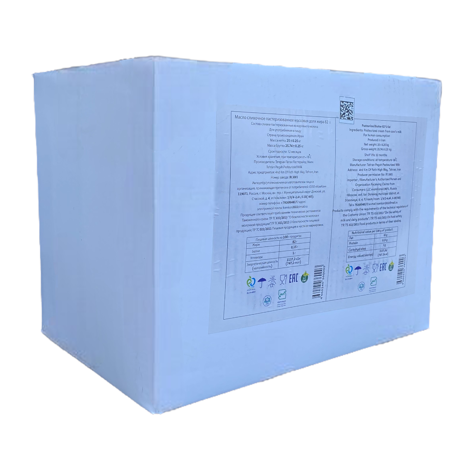 Масло сливочное 82% Tehran Pegah — продукт для профессионального использования в кондитерских производствах, пекарнях и HoReCa.