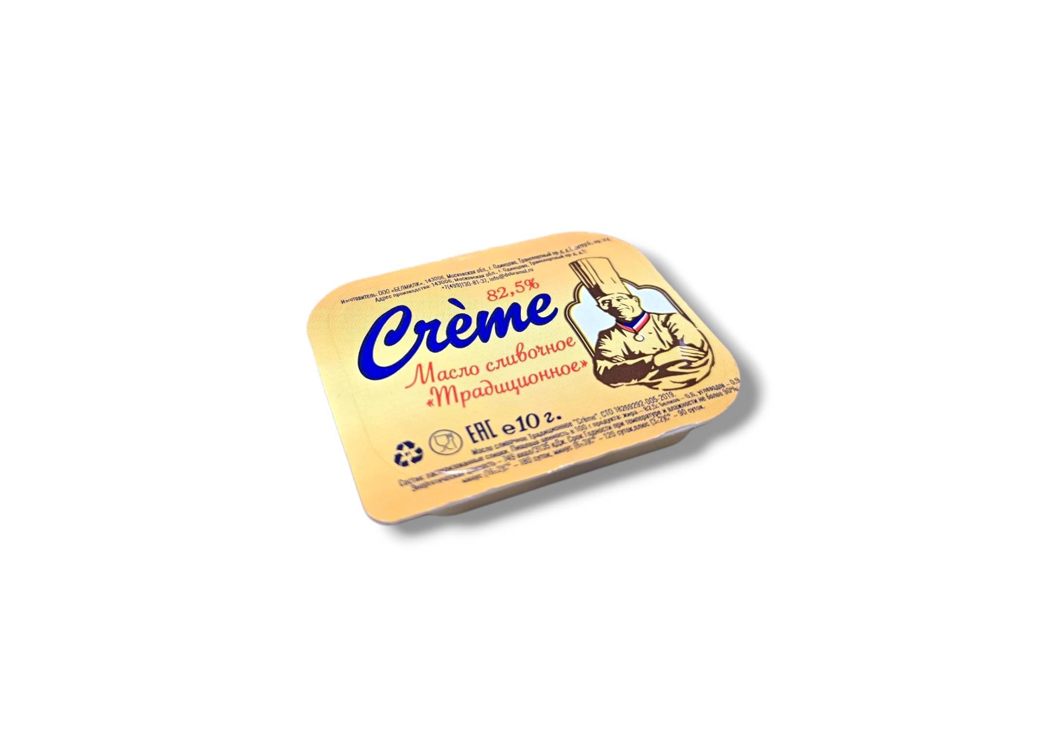Описание Масло сливочное порционное 82,5% CREME 10г*150шт