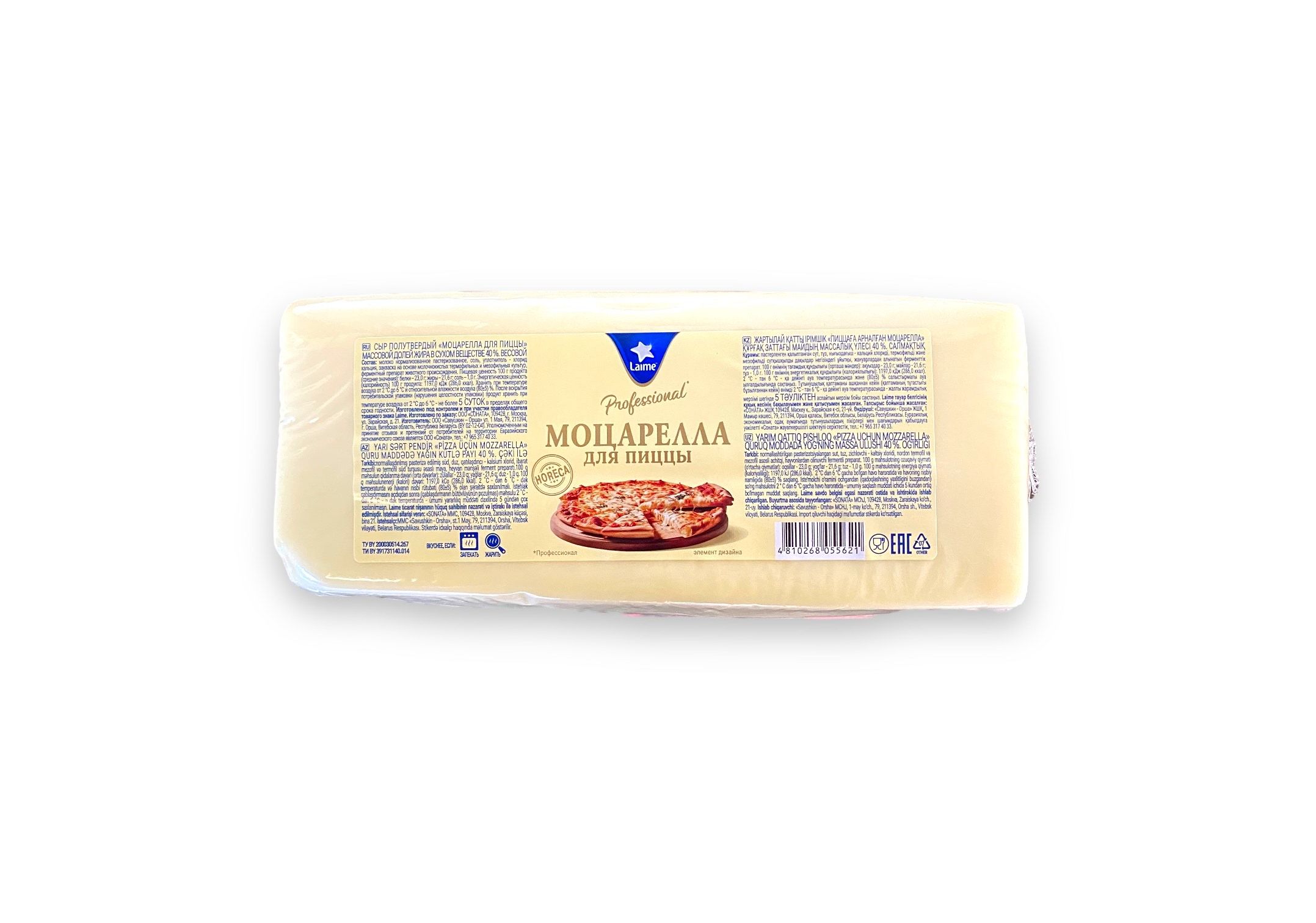 Описание Сыр Лайме Моцарелла для пиццы 40% брус ~2,5кг (Беларусь)